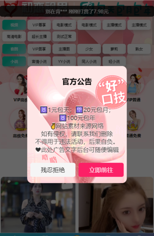 苹果CMS开发原创视频引流吸粉功能/支持2种播放模式和视频打赏系统