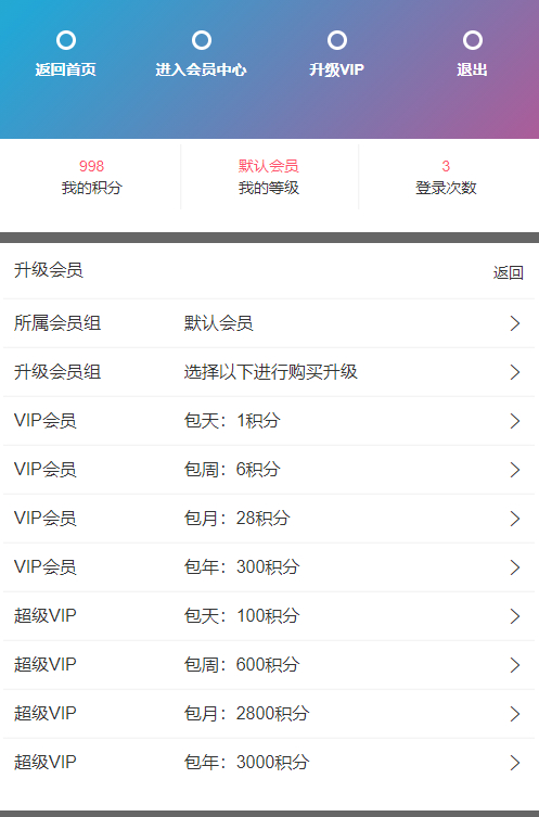 VIP会员制度:可对会员进行权限是设置及时间限制
