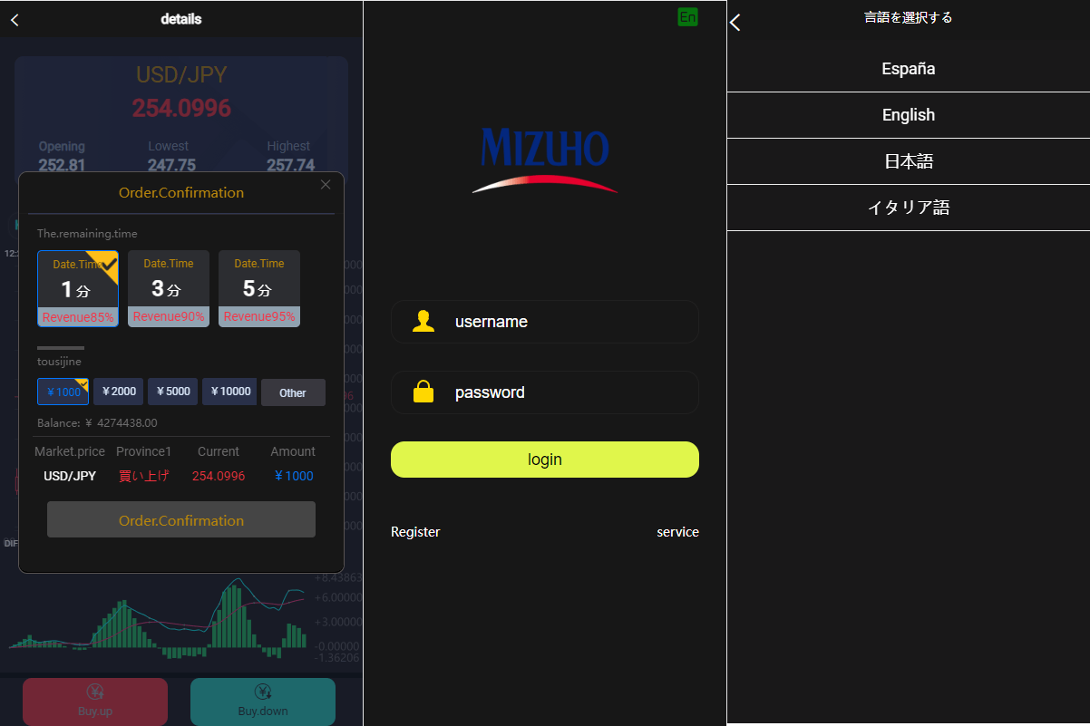 目前多种语言:英文、日语、西班牙语 系统默认是运营日本的,产品是虚拟币改的外汇名称,不是真实数据 声明:本站所有文章,如无特殊说明或标注,均为本站原创发布。任何个人或组织,在未征得本站同意时,禁止复制、盗用、采集、发布本站内容到任何网站、书籍等各类媒体平台。如若本站内容侵犯了原著者的合法权益,可联系我们进行处理。