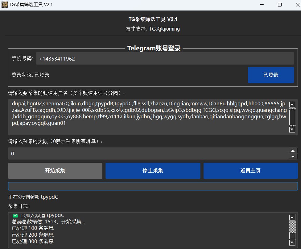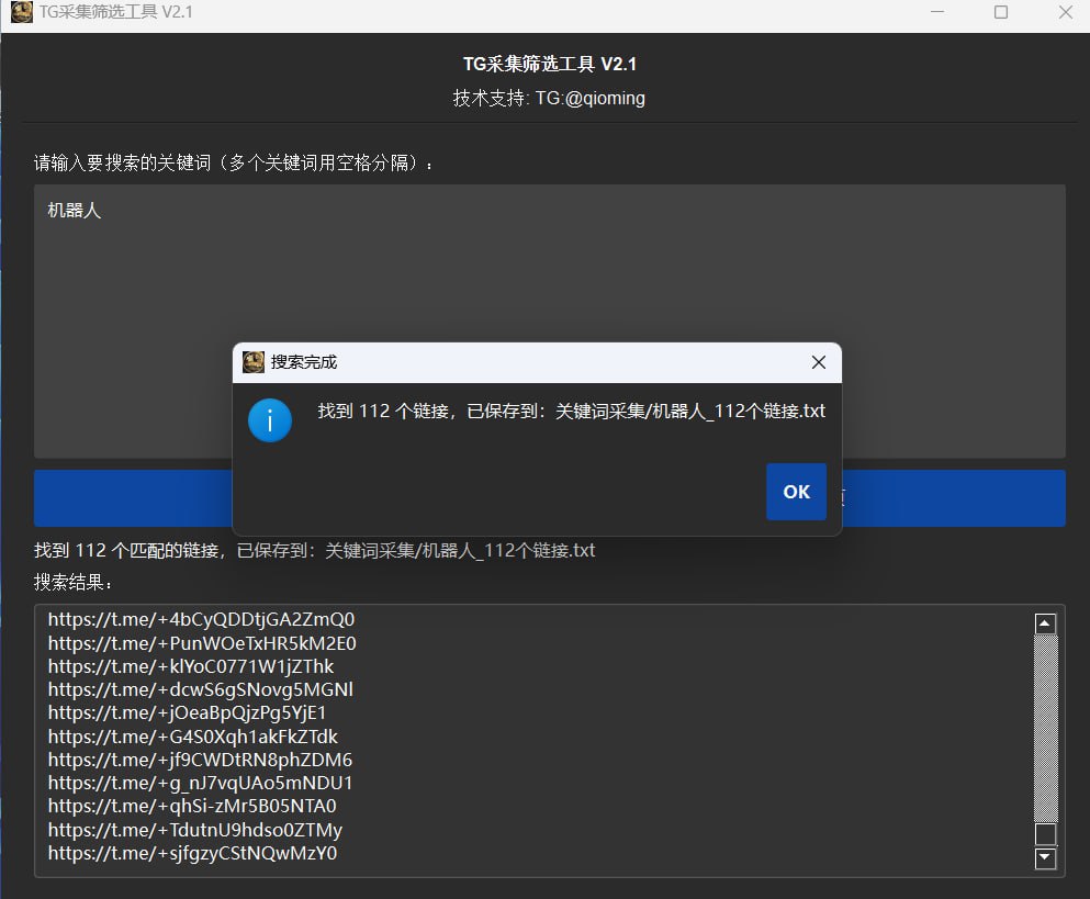 TG链接采集程序/链接筛选程序/关键词采集/成品软件