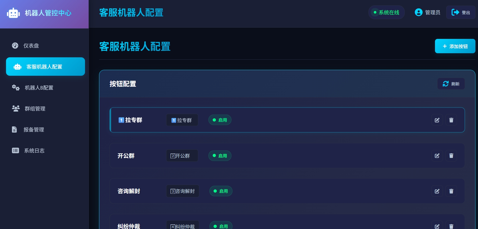 后台自定义设置每个键盘按钮映射的客服群id✅