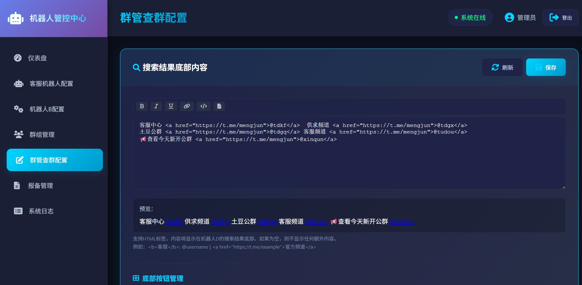 可自定义查群机器人结果底部内容(支持html格式)✅