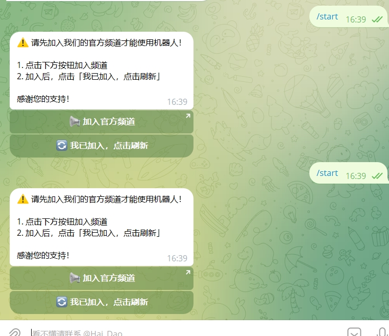 强制加入频道功能 (用户必须加入指定频道才可以使用机器人)