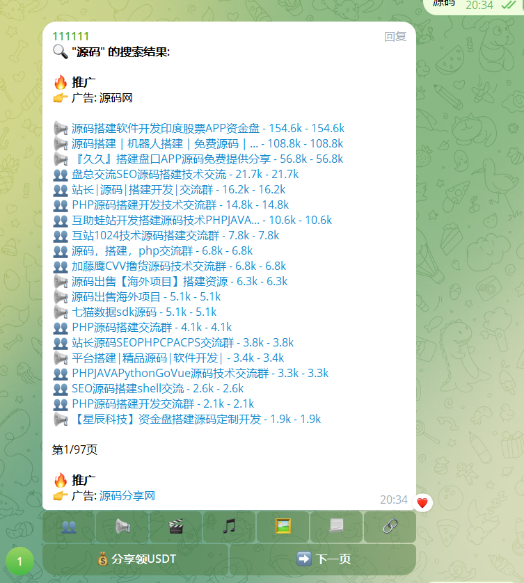 【寄售】仿夸克索引机器人源码修复版/带3w+群组数据/Telegram机器人源码/带视频搭建教程