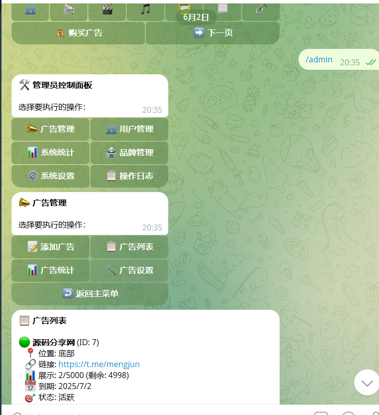 3.增加广告管理,机器人管理员添加广告位功能