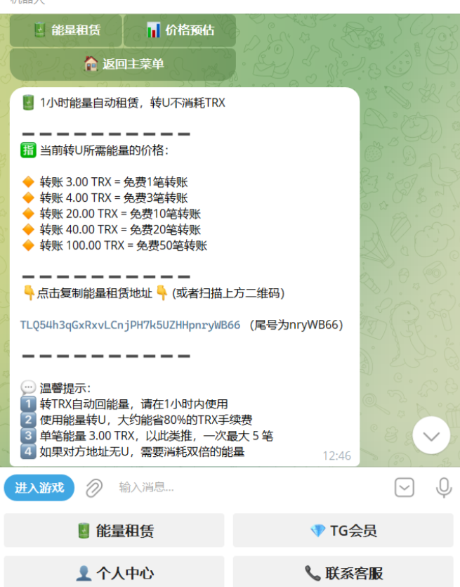 功能整体也没啥好说的,就能量租赁+TG会员自助开通功能